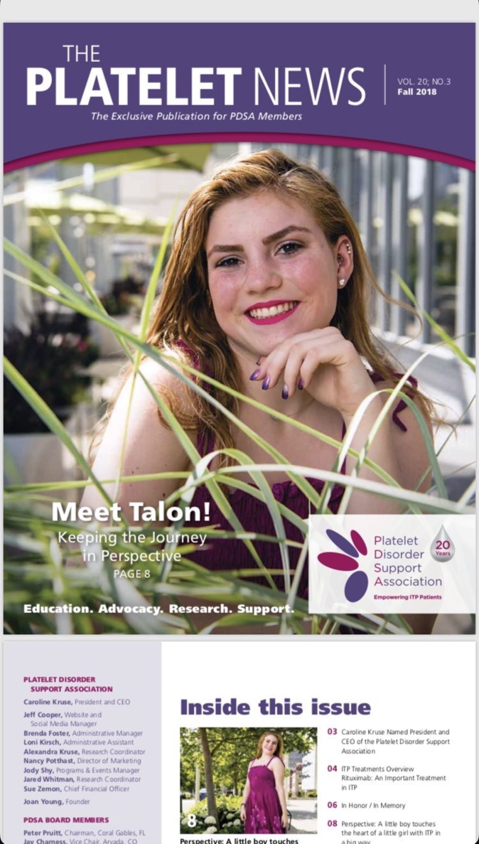 In 2018, I was asked to be on the cover of the fall edition of The Platelet News! I had never even had a professional picture taken before so the whole experience of doing a photoshoot and in person interview was really exciting to me! That was when I became inspired to begin my journey in being a voice for chronic illness, sharing my story in the hopes of connecting and inspiring with people all around the world! This really helped to define who I am and played a major role in owning my chronic illnesses by separating them from WHO I AM, to being CONDITIONS I HAVE - which did not define me!